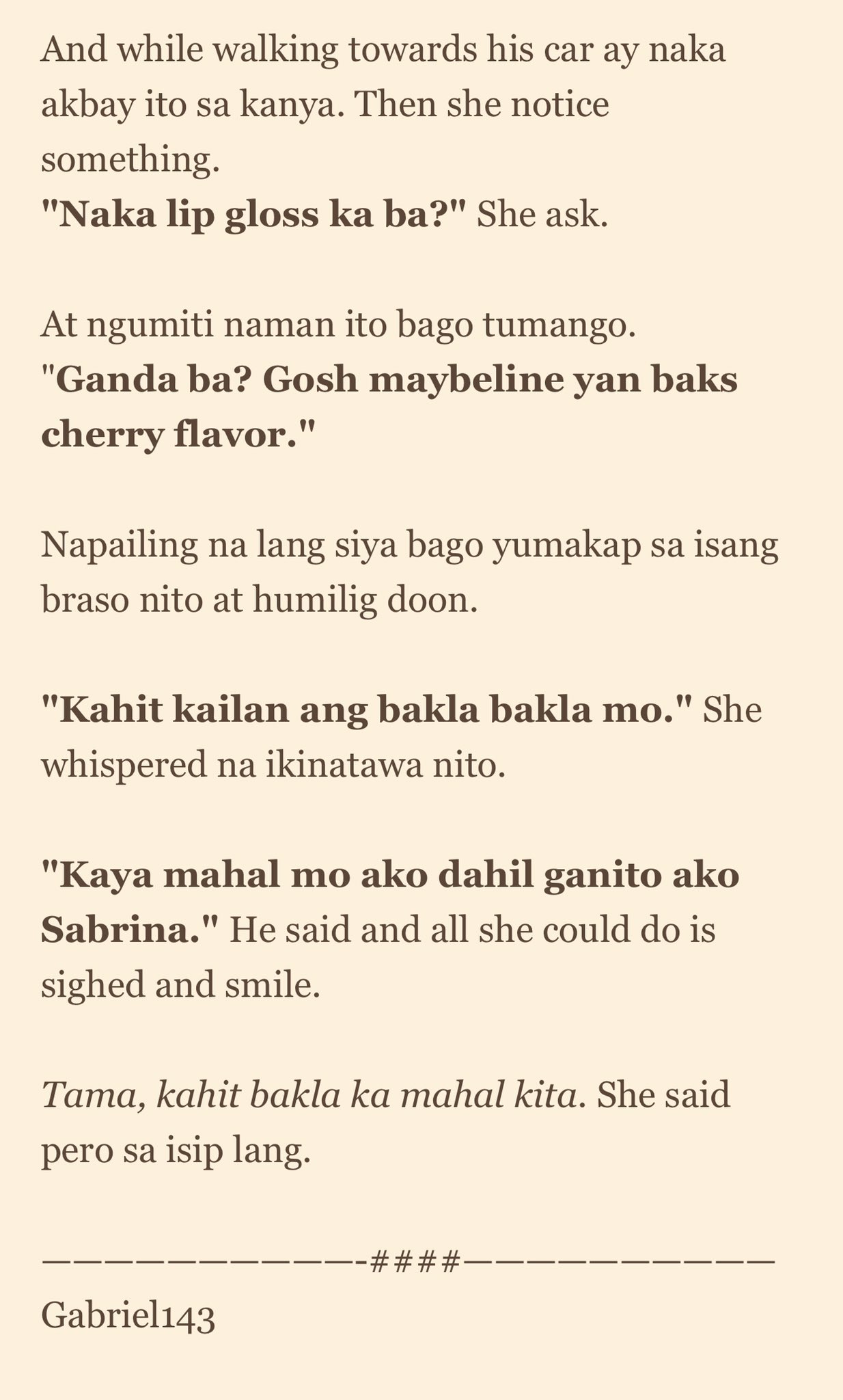 Im in love with him. Wala akong pakialam sa iniisip mo. And I think its just fair enough na after I said na pinakamalaki kong pagsisisi na.