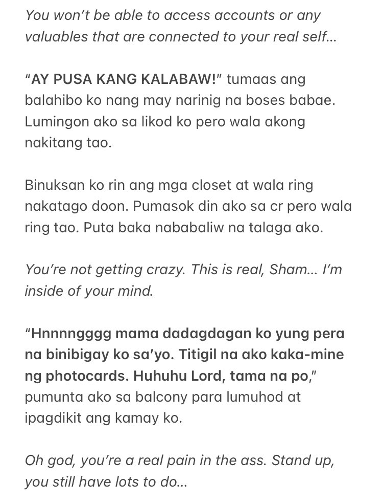 Pag wala akong ginagawa I would read comments tapos I would reply to them. Tiningnan ko siya muli pero hindi ko alam na andami na palang sumisilip sa bintana mga estudyanteng chismosa. I have translated a drama script and business memos English-Tagalog-English.