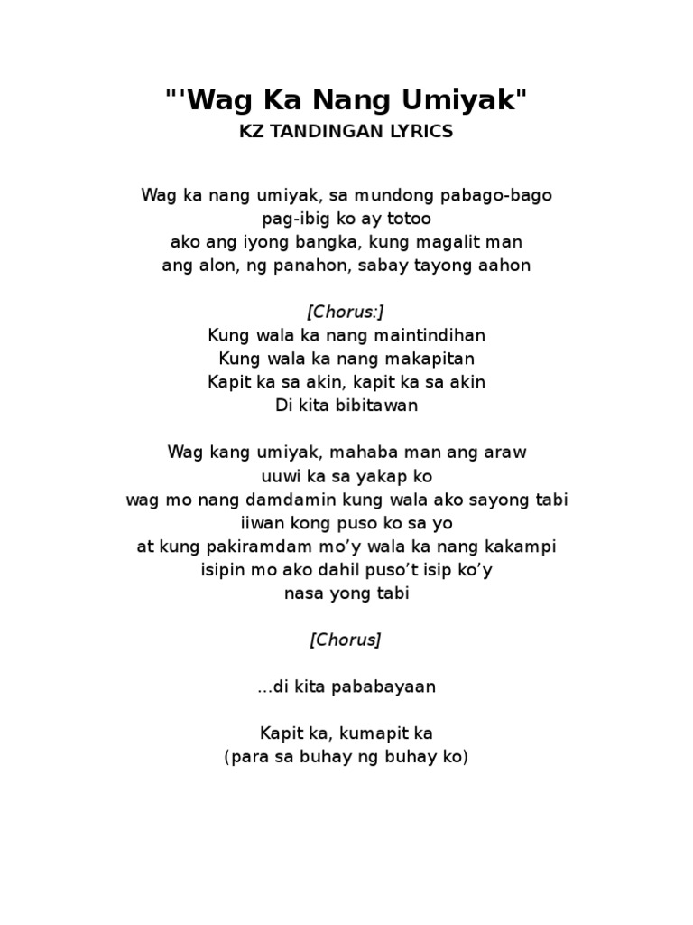 Choose one of the browsed Kung Wala Na lyrics get the lyrics and watch the video. Kung wala ka nang maintindihan Kung wala ka nang makapitan Kapit ka sa akin kapit ka sa akin Hindi kita bibitawan Wag ka nang umiyak mahaba man ang araw Uuwi ka sa yakap ko Wag mo nang damdamin kung wala ako sayong tabi Iiwan ko ang puso ko sa yo At kung pakiramdam moy wala ka nang kakampi Isipin mo ako dahil pusot isip koy Nasa yong. I apologize if sometimes the words come in so fast or too.